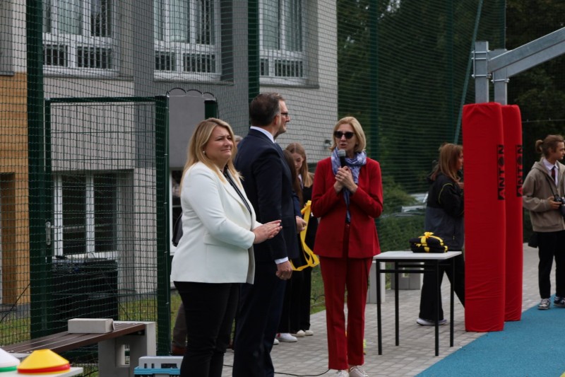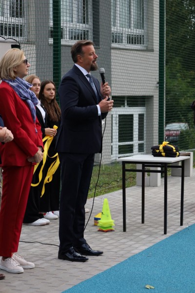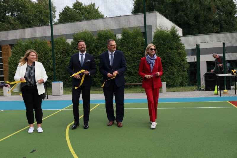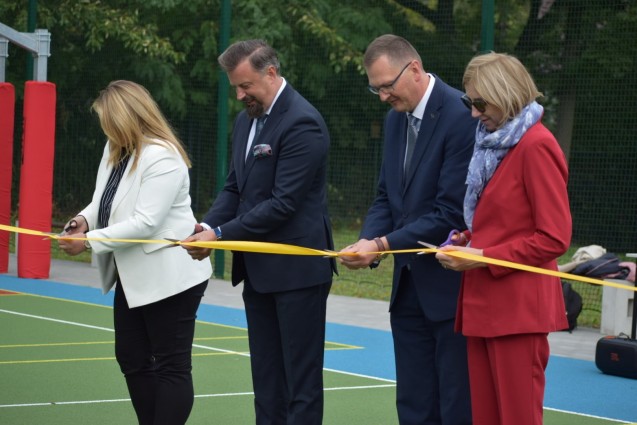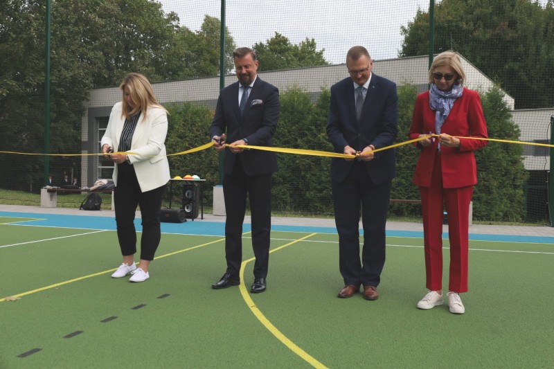 W wydarzeniu wzięli udział m.in. Prezydent Miasta Rafał Piech, Zastępca Prezydenta Beata Gałecka, Przewodniczący Rady Miasta Adam Cebula oraz Dyrektor szkoły Katarzyna Stronczek. Symboliczne przecięcie wstęgi, pamiątkowe zdjęcia i… pierwsze rzuty piłką do kosza oficjalnie rozpoczęły sportowe życie tej wyjątkowej przestrzeni.